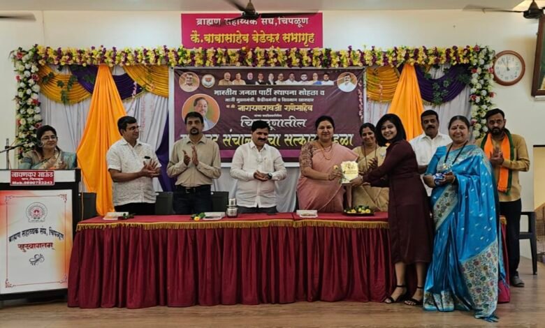 चिपळूण नागरी सहकारी पतसंस्था संस्थापक-अध्यक्ष सुभाषराव चव्हाण,सीइओ सौ.स्वप्ना यादव, नवकोकण एज्युकेशन सोसायटीचे चेअरमन मंगेश तांबे,यांच्यासह अनेक मान्यवरांचा भाजपाच्या वतीने सत्कार करण्यात आला.कार्यक्रमाचे प्रास्ताविक शहर मंडल अध्यक्ष शशिकांत मोदी यांनी केले.सत्कार सोहळा यशस्वी होण्यासाठी भाजपा सर्व कार्यकर्त्यांनी विशेष मेहनत घेतली. कार्यक्रमाचे सूत्रसंचालन संगीता पालकर, निखिल किल्लेकर यांनी केले.तर अभय चितळे यांनी आभार मानले.